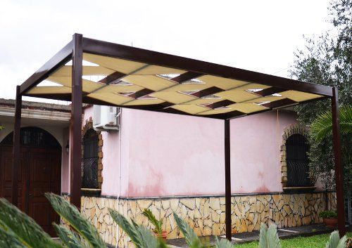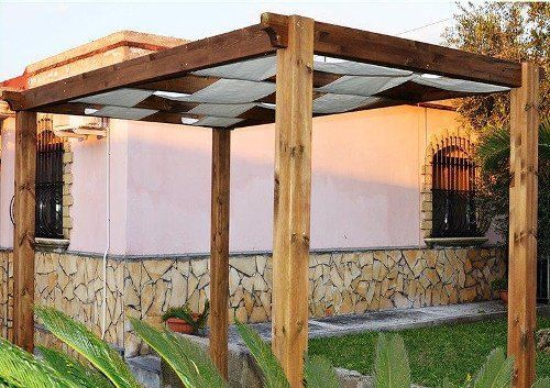 Combinazione perfetta tra la struttura in legno e l’intreccio dei teli in tessuto , che conferisce un’estetica leggera, ma allo stesso tempo robusta, semplice, sicura ed elegante, adattandosi perfettamente alle esigenze del vivere all’aperto. Il pergolato orizzontale a campata singola in legno di pino lamellare, impregnato in autoclave secondo la normativa vigente, è composto da montanti, arcarecci e pilastri. L’impregnatura sottovuoto è a pressione in autoclave, per conferire al legno proprietà antitermiche, antitarlo, antimuffa e antimarcescenza, secondo determinanti parametri e controlli. I trattamenti sono effettuati nel massimo rispetto dei parametri ecologici, ed i controlli eseguiti garantiscono l’efficacia degli stessi.