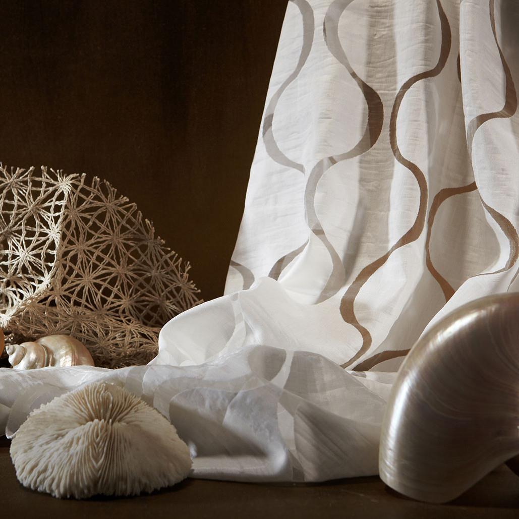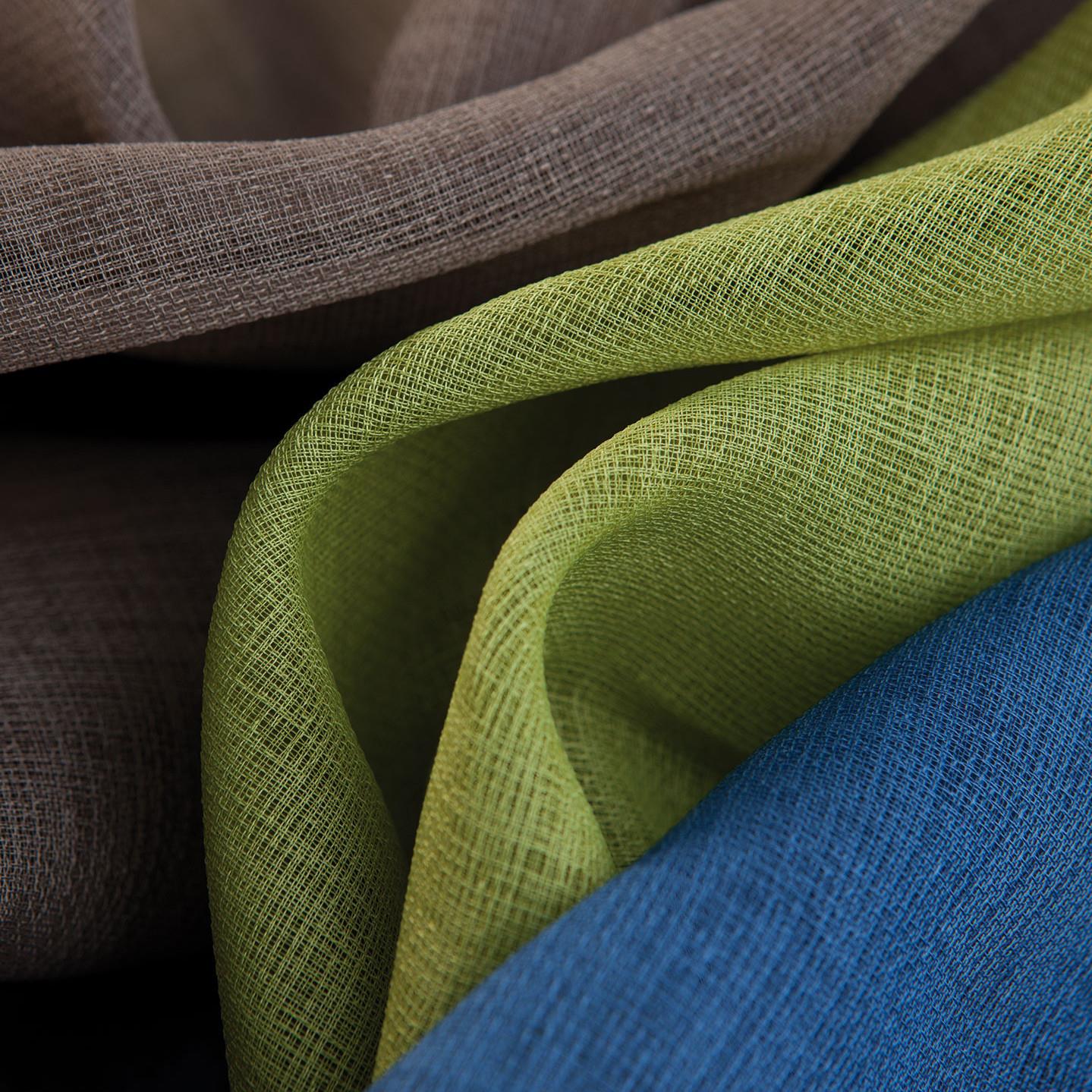 Tendaggi antifiamma, texture, effetto mélange, reti, giri inglesi, millerighe, effetto lino, pongé, taffetas, georgette, veli, mussole, fodere e etamine. La collezione spazia dalle texture dalle mani morbide alle indispensabili etamine, ed è quindi una delle più complete sul mercato consentendo di trovare un prodotto adatto ad ogni ambiente.
