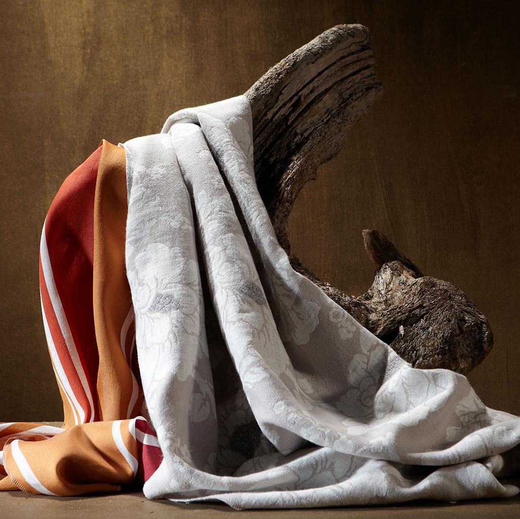 Il lino è il protagonista assoluto di questa sofisticate collezione composta da: righe con texture e mano particolari (alcune proposte con il proprio unito coordinato); ricami delicati o geometrici; fil coupé ad effetto ikat o dal disegno più classico e jacquard dalla mano morbida e calda.