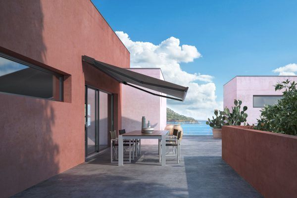 T-Line è la tenda dotata di cassonetto che nasconde il telo quando riavvolto.